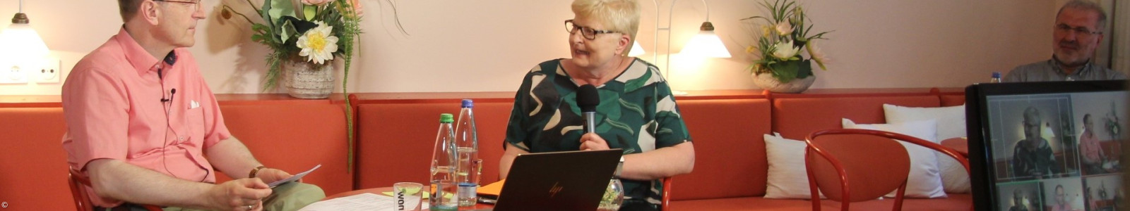 „Corona hat für uns als Kirche tatsächlich einen tiefen Einschnitt gebracht“ – , so die erste Einschätzung von Dekanin Ursula Brecht aus Neustadt beim ersten Talk im Wildbad Rothenburg zum Thema Corona und Kirche. Doch aus ihrer Sicht gab es in dieser Zeit nicht nur heftige Umbrüche zu bewältigen, sondern auch viele gute Entwicklungen und hoffnungsvolle Aufbrüche – vor allem auch im digitalen Bereich. Das neue Format „Talk im Wildbad“ sei dafür ein gutes Beispiel. Es ist die erste hybride Veranstaltung des evangelischen Forums Neustadt in Kooperation mit dem evangelischen Bildungswerk und dem Wildbad mit einem Publikum vor Ort im Roten Salon des Wildbades und online Teilnehmenden.