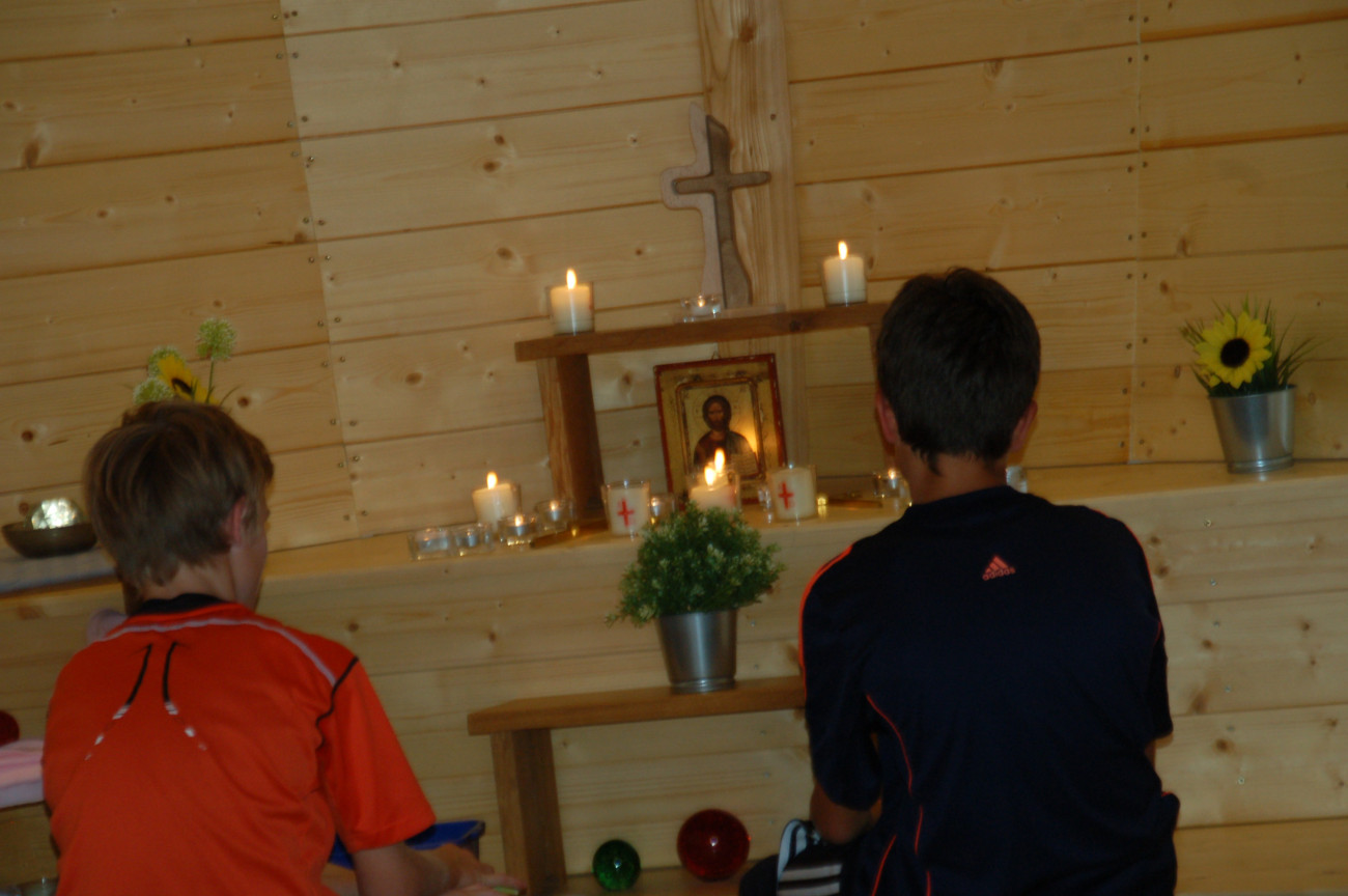 Im Workshop „Archetyp“ schufen sich die Teilnehmer ihren persönlichen Ort, an dem sie mit einem guten Freund über etwas Wichtiges zu sprechen. Hierbei nutzten sie Kerzen, Bilder, Lichterketten, Kissen, Decken, usw. und veränderten nach ihren Vorstellungen den Raum im Innern einer freistehenden Holzarche. Die anschließende Meditation ließ Zeit für sich selbst und dem Gespräch mit Gott.