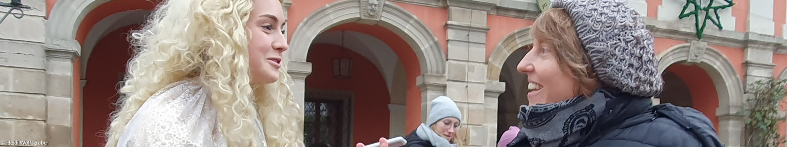 Christkind mit goldenem Haar im Interview mit Pfarrerin